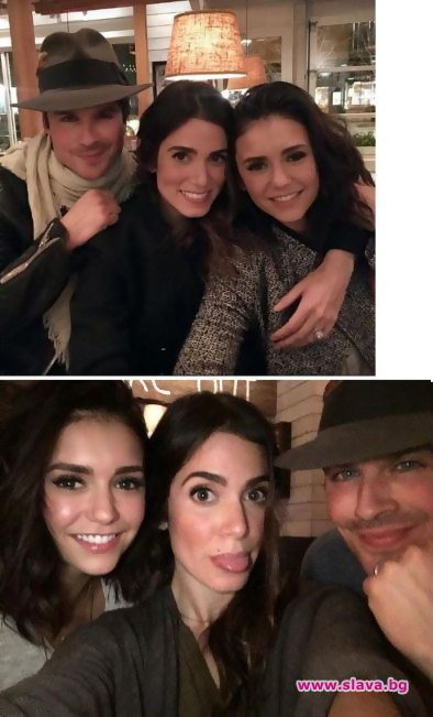 След години спекулации за обтегнати отношения и ревност, Нина Добрев и Иън Сомърхолдър показаха, че между тях всичко е съвсем наред. Звездите от “Дневниците на вампира” се събраха за една последна вечеря по случай края на снимките на сериала. Нина публикува снимка, на която тя, Иън и съпругата му Ники Рийд позират заедно. Посланието под кадъра пък е точно и ясно – тримата се разбират чудесно и са запазили приятелските си отношения. “Не мога да повярвам как лети времето. Прощална вечеря с отбор Сомърийд! Много е хубаво да си наваксаме с тези шегаджии. Всичко е