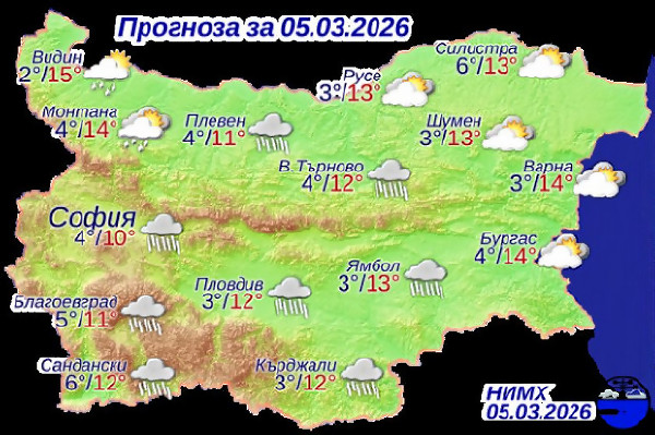 Дъждовно време в четвъртък, температурите до 15 градуса – облачно по Черноморието