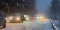 Силен снеговалеж и сериозен трафик на прохода "Предела"