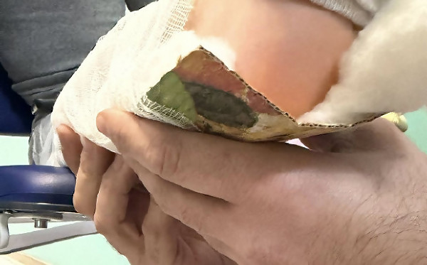Потрес: Шинираха счупен крак на дете с картон от кутия за пица