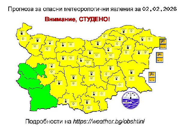 Началото на седмицата започва с жълт код за студ и снеговалежи в почти цялата страна (КАРТА)