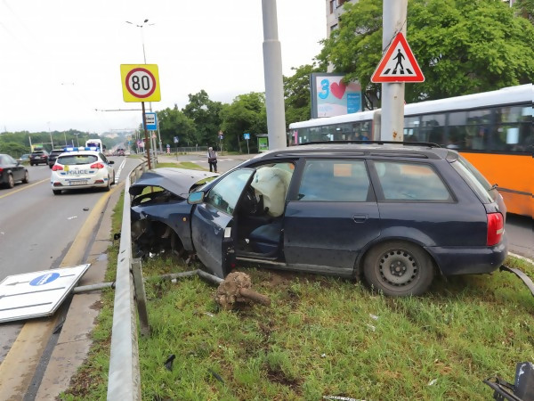 Кола помете част от мантинелата на бул. "Цариградско шосе"