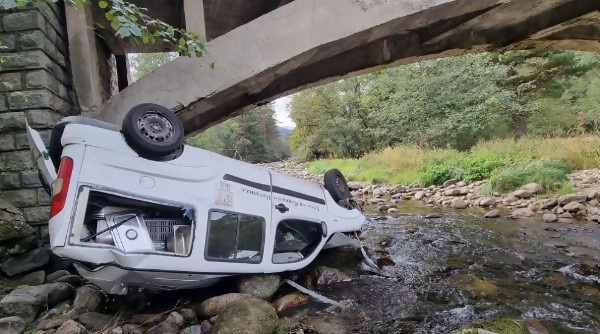 Кола на Социалния патронаж в Самоков падна от моста в реката при Бели Искър (СНИМКИ)