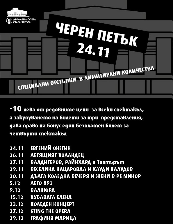 “Черен петък” за цени на билети в Старозагорската опера. Изберете си събития от програмата за декември