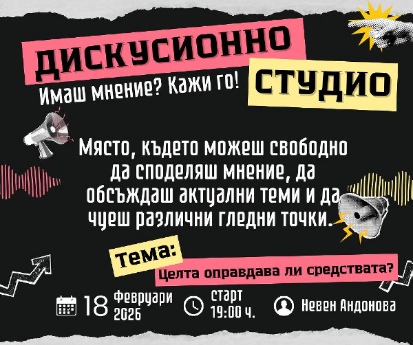 Дискусионно студио в Стара Загора поставя въпроса „Целта оправдава ли средствата?“