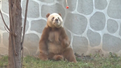 Вижте как спортува Ки Дзай – единствената в света панда с кафяво-бели петна, отглеждана в плен (ВИДЕО)