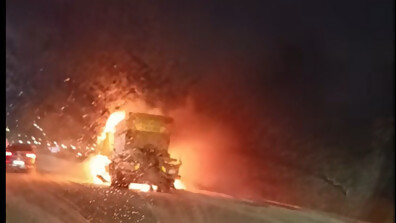 Снегорин изгоря на Северната тангента в София и причини задръстване (ВИДЕО)
