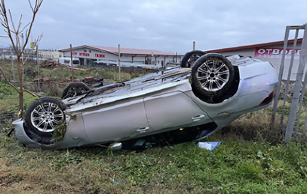 Кола се обърна по таван на пътя Медово – Страцин, шофьорът е в болница