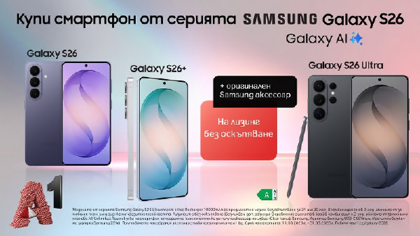 Вземете смартфон от новата серия Samsung Galaxy S26 с 0% лихва от А1