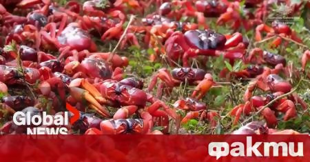 Милиони червени раци започнаха годишната си миграция на австралийския остров Крисмас