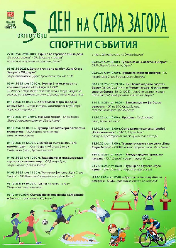 Богата спортна програма очаква старозагорци по повод празника на града - 5 октомври