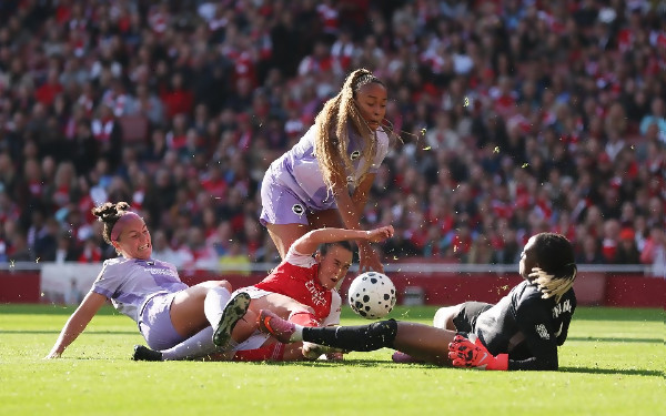 На много неприятни сцени станаха свидетели зрителите ма сблъсъка между Арсенал и Брайтън Висшата лига при жените в Англия. Двубоят бе прекъснат за повече от десет минути, след като звездата на гостите от Брайтън – Майлис Мпом, получи тежък удар в главата и не успя да продължи срещата. Мпом пострада...