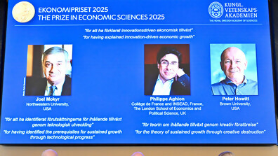 Нобеловата награда за икономика през 2025 г. се връчва на Джоел Мокир, Филип Агион и Питър Хауит за това, че разясняват в дълбочина "развитието на икономическия растеж, движен от иновациите, както и устойчивото развитие", съобщи Ханс Елегрен,...