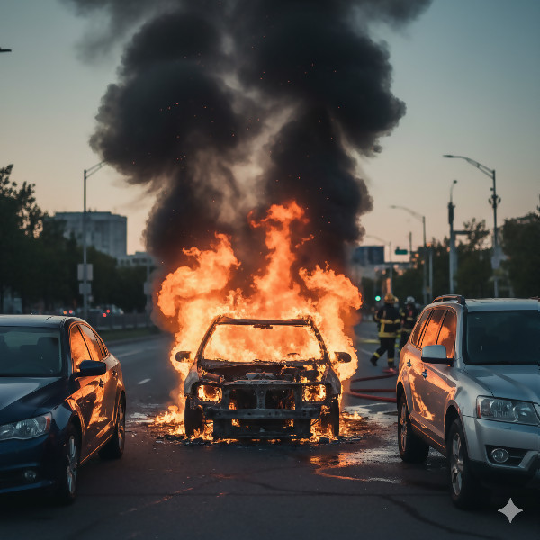 Три автомобила в пламъци – пожар в пловдивския кв. „Христо Смирненски“