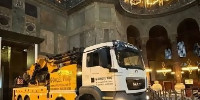 Камиони влязоха вътре в "Света София" в Истанбул, духовниците се притесниха