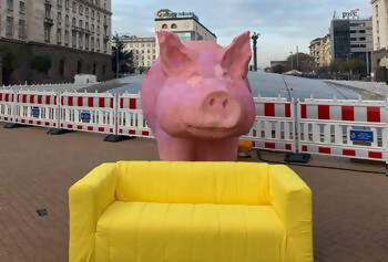 Жълт диван чака Слави Трифонов пред прасето на площад “Независимост“