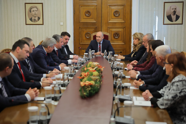 Президентът Румен Радев се срещна днес на „Дондуков“ 2 с представители на „БСП – Обединена левица“, чиято парламентарна група е пета по численост в Народното събрание. В съответствие с чл. 99, ал. 1 от Конституцията държавният глава провежда консултации с политическите формации в 51-вото Народно събрание. В разговора участва и вицепрезидентът Илияна Йотова. Румен Радев […]