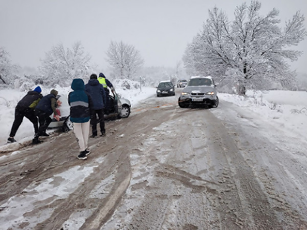 Трогваща история на връх Коледа: Полицаи и шофьори помогнаха на възрастна жена, аварирала в канавка насред пътя, да се прибере у дома