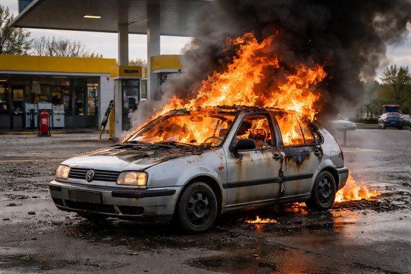 Автомобил е избухнал в пламъци на бензиностанция във Варненско, дете е с тежки изгаряния