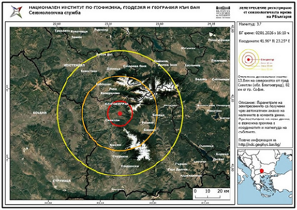 "Епицентърът на земетресението от 3.7 по Рихтер, усетено в Благоевградско, е в Симитли