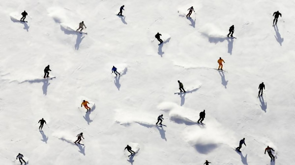 Скиори отдадоха почит във формата на сърце в памет на жертвите от пожара в Швейцария