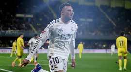 "Белите" спечелиха с 2:0 гостуването си на третия в класирането Виляреал. Килиан Мбапе откри резултата в самото начало на второто полувреме и се разписа от дузпа в края на срещата. Успехът качи Реал временно на върха с аванс от две точки пред отбора на Барселона, който играе утре.