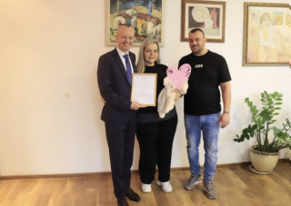 Кметът М. Байкушев посрещна в кабинета си първото бебе, родено в Благоевград през 2026 година