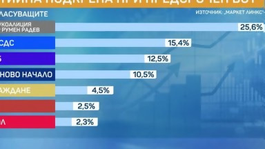 "Маркет линкс": Радев взима 25.6%, ГЕРБ са втори с 10.2 назад, МЕЧ, БСП и ИТН са под чертата