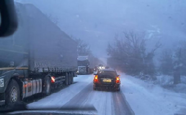 Колона от камиони на пътя Русе - Бяла заради тежките снегонавявания