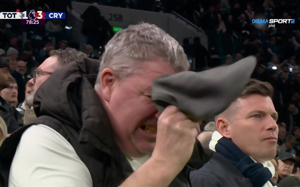 Фен на Тотнъм не може да повярва - бие се с шапка по главата (видео)