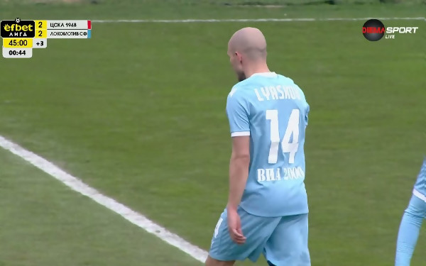 В първата минута на добавеното време на първата част Локомотив София изравни. Доминик Янков получи отдясно и върна по земя към дъгата на наказателното поле, където бе забравен Ерол Дост. Той овладя и с второто си докосване тефнично прати топката в десния ъгъл на вратаря на ЦСКА 1948. ...