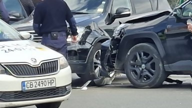 Катастрофа затапи столичния бул. "Ал. Малинов", жена е ранена (снимки/видео)