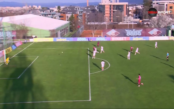 Впоследствие Матео Стаматов слаломира отляво и стреля по диагонала, но топката профуча покрай целта.