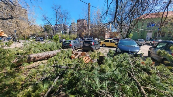 Хаос след силния вятър в столицата - паднали дървета и смачкани коли