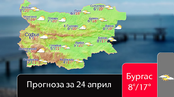 По Черноморието днес облачността ще е променлива, намаляваща до предимно слънчево. Ще духа умерен, временно силен вятър от запад-северозапад. ...