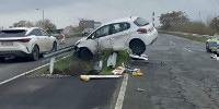 Зрелищна катастрофа от Сарафово към Бургас: 24-годишна жена с „Пежо“ се метна на мантинелата, няма пострадали