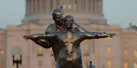 Необичайна арт инсталация осъмна в сърцето на американската столица, изобразявайки Доналд Тръмп и Джефри Епстийн в емблематичната поза…