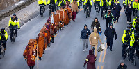 Група будистки монаси пристигнаха във Вашингтон след 15-седмичен Поход за мир