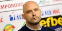 Наставникът на ''Левски'' Славиша Стоянович говори пред медиите след кацането на отбора от хърватския град Пула, до който…