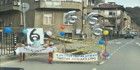 Огромна дупка в Благоевград се сдоби с торта, балони и празнична украса, след като граждани решиха да отбележат…