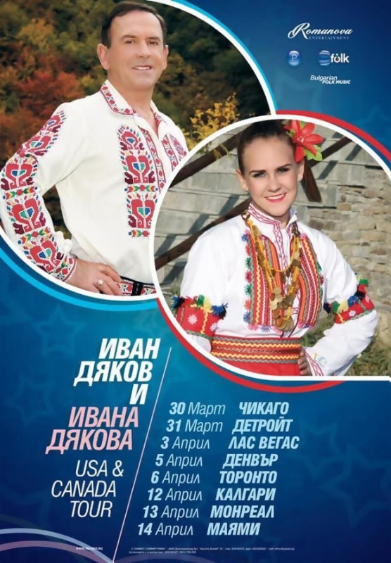 Роденият в Хаджидимово известен фолклорен изпълнител Иван Дяков и неговата дъщеря Ивана ще пеят отвъд Океана. От 30 март започва турнете на двамата изпълнители на народни песни в САЩ и Канада.