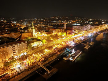 Снимка на деня: Десетки хиляди празнуваха в Будапеща победата над Орбан
