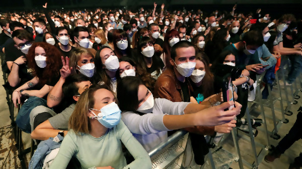 Фенове танцуваха, прегръщаха се и пяха заедно с музикантите от групата „Love of Lesbian“. Хората носеха маски, но не спазваха социална дистанция, а условието за влизане беше отрицателен тест за Covid-19.