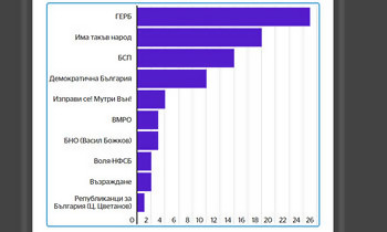 При 80% готови резултати: ГЕРБ е с 26%, Трифонов - 18%, а ВМРО е извън парламента (графика)