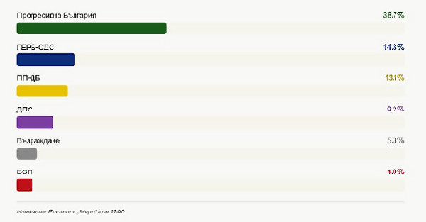 "Мяра": Радев с 38,7%, ГЕРБ-СДС с 14,8%, БСП остава на ръба
