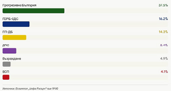 Първи екзитпол "Алфа Рисърч": Радев печели убедително, БСП може да остане извън парламента