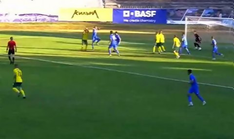 В 56-ата минута на мача Костадин Христов центрира от свободен удар, но съотборниците му не успяха да се възползват от хаоса в "сините" редици и така и не оправиха удар към вратата на Петър Петров.