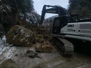 Седем машини работят по разчистването на падналата скална маса на пътя Стойките - Широка лъка