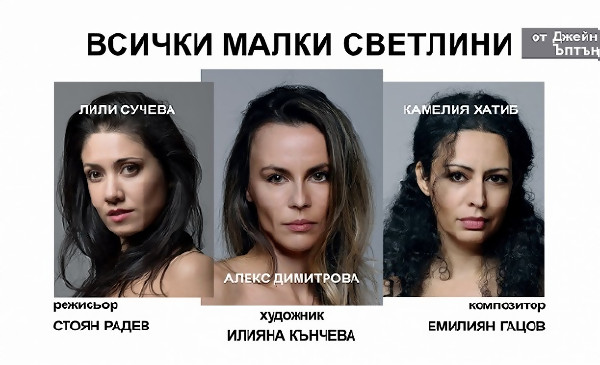 На 21 ноември в Театър Азарян младите и талантливи актьори от Сдружение „Enso" - Камелия Хатиб, Александра Димитрова и Лили Сучева ще представят премиерния спектакъл „Всички малки светлини" от Джейн Ъптън. Това е вторият проект за екипа, след дебюта им с „Демони" от шведския драматург Ларш Нурен. Режисьор на „Всички малки светлини" е Стоян Радев. Написана през 2016 година, пиесата печели британската награда „George Devine Award" и номинация за най-добра пиеса на писателската гилдия. Основните теми са социалната вина, семейството, приятелството, любовта. Попитана какво иска да постигне с текста си, Джейн Ъптън отговоря, че се надява да помогне за осъзнаването на личната и социална трагедия, свързана със сексуалната експлоатация. „В нашия театрален опит върху тази драматургия и ние се надяваме да се присъединим към помощта като развълнуваме публиката и я направим съпричастна и загрижена", споделя режисьорът Стоян Радев. „Смехът, сълзите, обещанието и отчаянието на тийнейджърската младост са пленителни и разтърсващи, защото ни изправят пред мечтата, която всеки живот представлява, мечта, която може да бъде окрилена или погубена. Героините на пиесата са поставени в критична ситуация и изходът е труден за откриване", разказват актрисите от спектакъла