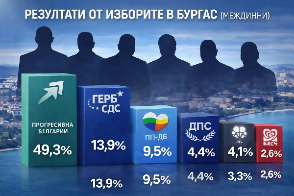 Разгромна преднина за „Прогресивна България“ в Бургас: над 49% при обработени 4,5% от протоколите